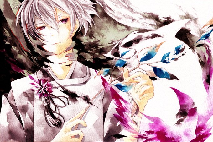 誰にも祀ってもらえなくなった神様 顔の左右で表情を変えたかった ホワイトワトソンボードに筆ペン(通常・薄墨)、アートブラッシュ、水彩色鉛筆、水彩鉛筆、Photoshop