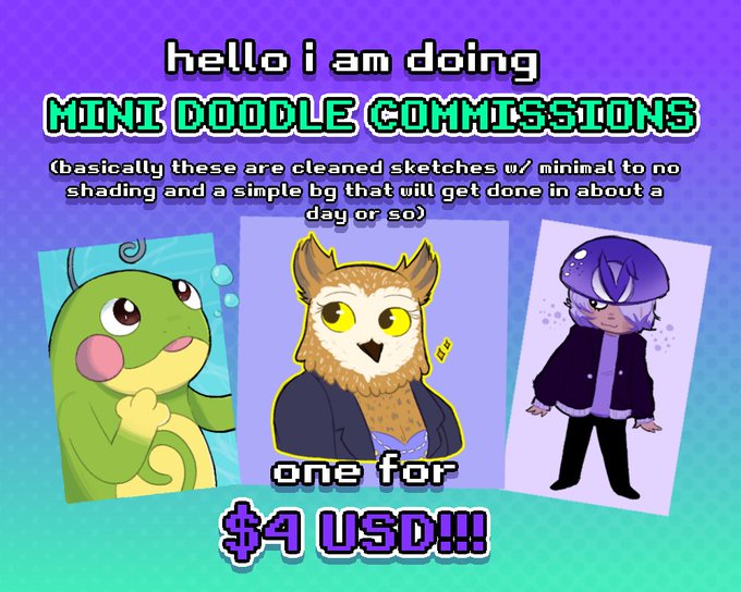 hii im finally opening some small commissions! more info + where you can fill out your commission can be found in the google form here: https://t.co/TAiuIQj3g5