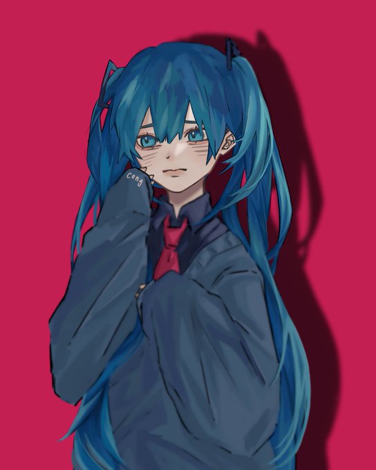 blue hair blue tie, hiding in your wifi ミク 🎧 #miku #イラスト好きな人と繋がりたい #fanart