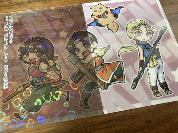 有償見本キャンペーンで申し込んだサンプルが届きました✨ 前作ったポスカの流用なんですがノベルティの用紙サンプルに最適かなと☺️ この絵柄ならホログラムも合うんじゃないかと思ったけどやっぱり合いますね! あと推し達ににハートが可愛かった🥰 #おたクラブでつくったよ