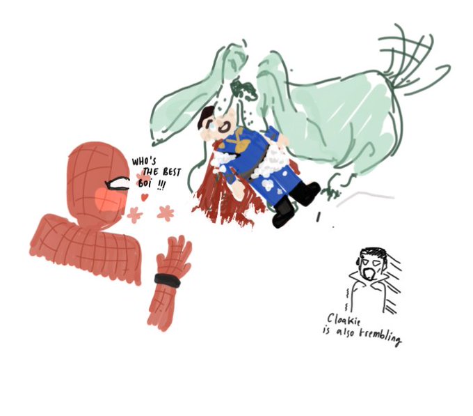 @Hnybnny It's not like he prefers his Spidey plushie ( just a little bit more) but it's is for sleeping and the Strange one is for play time Uwu