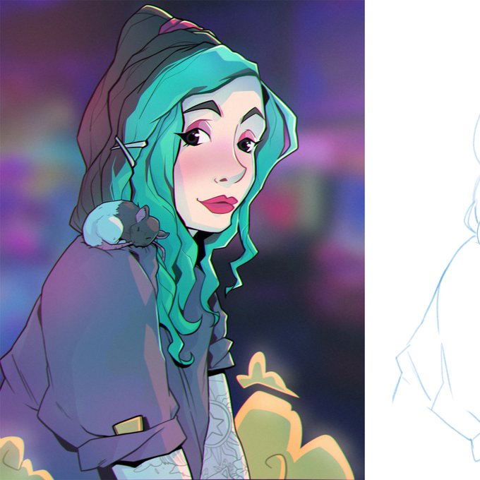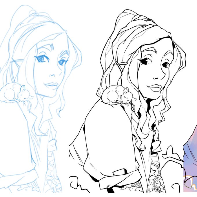 Etapas do processo da ilustração da @kyurenii (antes do recolor no cabelo) 😊#WIP #Illustration