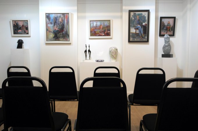 The room is ready; the #paintings hung, for Norman Long's talk on Thursday, which is fully booked.