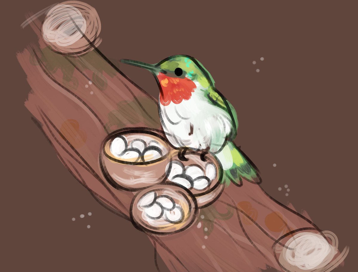 Birds nest fungi 🍄 ruby-throated hummingbird sketch