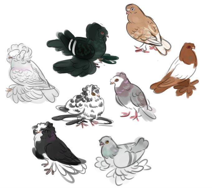 Day 31 #avianaugust ~ a gaggle of chibi Trumpeter Pigeon varieties (wips)! :D