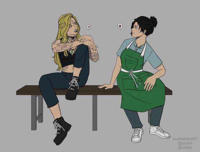 Tattoo shop/flower shop au for beladonna… it seemed to fit them pretty well 🤔