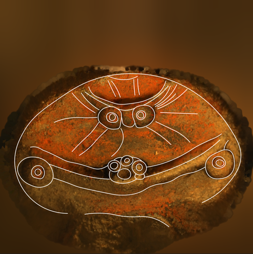 加曽利貝塚博物館令和3年度企画展「あれもE これもE 加曽利E式土器 千葉市編2 -加曽利EⅣ式土器とその末裔たち-」に展示されている称名寺Ⅰ式深鉢(No.3)(千葉市愛生遺跡)を3Dモデルで観察。木に生る果実のような文様が浮かび上がりました。J字文との関係は?