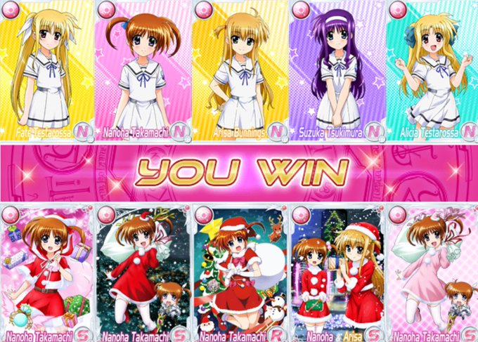 無料配布だった2枚の『なのはSR』カードをウッカリ進化させると、このSRが消えてしまうので、残すために時間をかけて別の素材を集めてようやく実現しました。