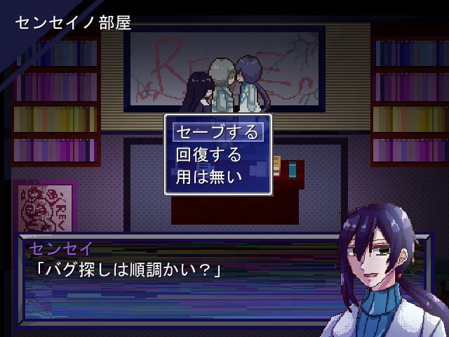#スーパーゲ制デー 『バグリラ』制作中です! メインのイベントが半分くらい組めました! あとは残りのメインイベントとサブイベを組んだり、TALKというメニューコマンドの会話内容を書いたり、BGMや顔グラを増やしたりします。