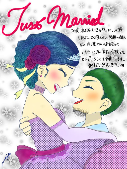 本日12月22日、私まぴこ、入籍致しました.・*’’*・.♬これから2人、頑張らないことを頑張りながらゆったり私たちのペースで1歩1歩大切に歩んでいきたいと思います。どうぞよろしくお願い致します(^._.^)♡