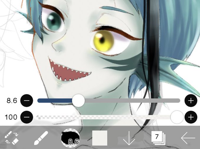 もう頭先に仕上げちゃうわ🦈 どうせレイヤー分けちゃうし後から体描く(っ´ω`c)マッ