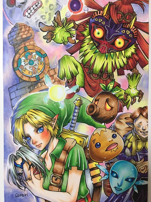 巷ではブレスオブワイルドが熱いようですが…! 4月27日はムジュラの仮面が生誕17周年だったのでお祝い絵を描きました!(大遅刻) 数々のトラウマを植え付けられましたがw不気味な雰囲気とどこか温かいタルミナの世界が大好きです♡ #ゼルダの伝説 #ムジュラの仮面