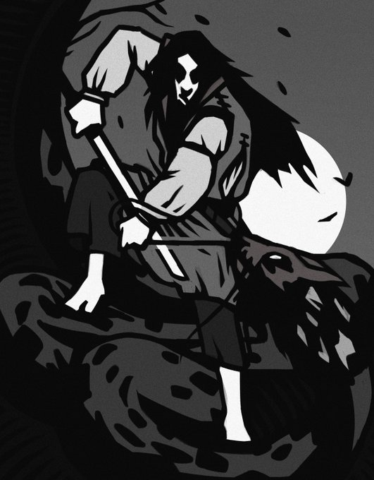 Here is the final product: Sunasso-no-Mikoto slaying the dragon. I was directly inspired by Utagawa Kuniteru's piece. I tried different color schemes but it finally end up looking the best in black and white.