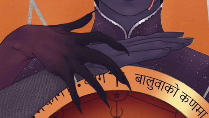 Here's my current in-play darling & subject of art. Lucrecio (he/they) is a dusk elf divination wizard & poet from Barovia. They've been possessed by a devil (who they fell in love with) for over 200 years and have prophetic nightmares ✨