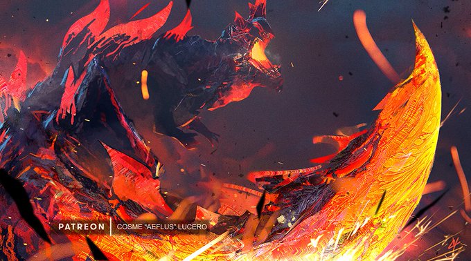 ‼️Urgent Quest‼️The Star of Despair, Crimson Glow Valstrax! "After the meteor shower some hunters have gone missing in the mountain, investigate!". Had a lot of fun painting this monster and hunting it. What do you think of the new Valstrax? #MonsterHunterRise #MonsterHunter