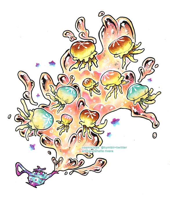 “conjured familiar” @drawtober | oceanic familiars #drawtober2017 #inktober2017 #jellyfish #ocean #lamp #candy