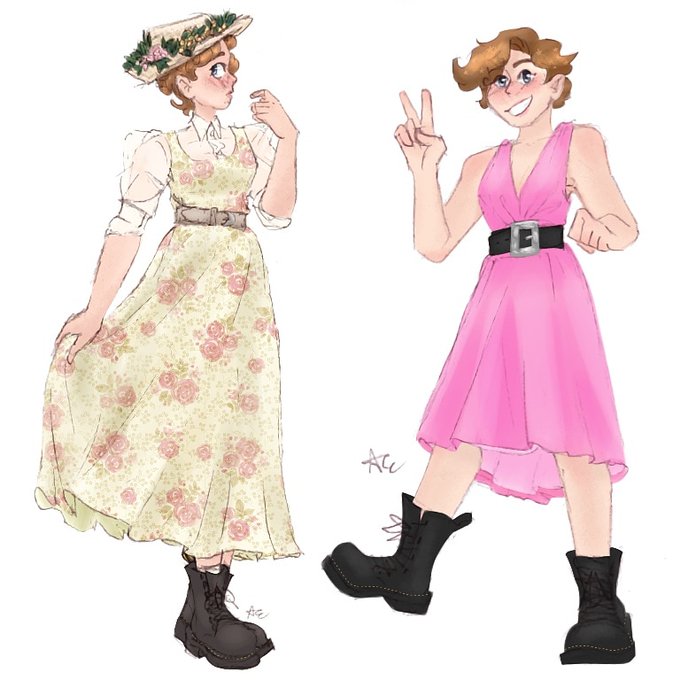 The two ends of my fashion spectrum: Cottagecore and Chaotic 80s Pastel Punk (inspired by two outfits I put together while waiting for grom the other night) #fashion #art #cottagecore
