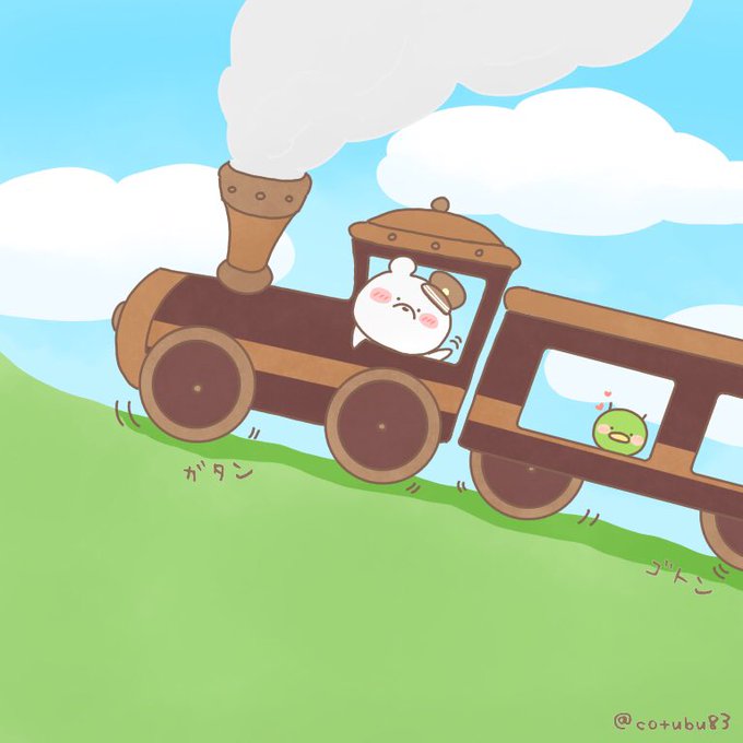 しゅっしゅっぽっぽっ🛤 ごんすけお外が見えてご機嫌です🌟 #今日は何の日 #鉄道の日 #ほっこり #お絵かき #イラスト #ゆるっと #illust #イラスト好きさんと繋がりたい #絵描きの輪 #絵描きさんと繫がりたい #しろくま #しろくまごんすけ #10月14日