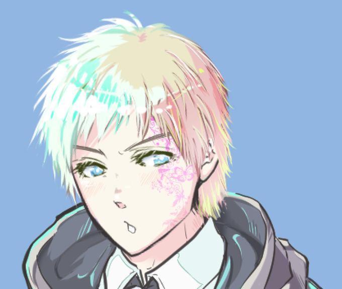 なにをそんなに時間がかかっているのかわからないマルクス立ち絵進捗。 髪の毛が綺麗なのでアップバージョンも。 中性枠+外国人(アメリカ出身)PCなので、ゆー絵にしては珍しいまつげが長いタイプ。