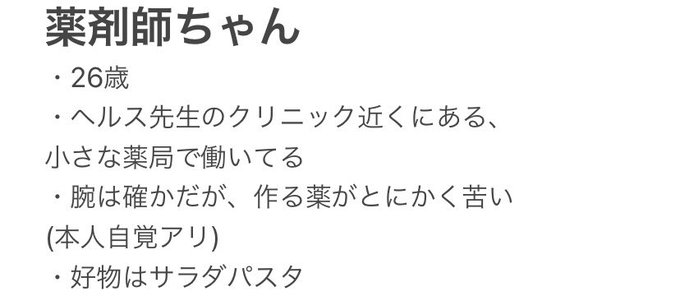 薬剤師ちゃん(仮名)の設定をちょっとだけ考える