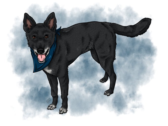 Art incoming! I realized I never posted the finished artwork that @WThom86 commissioned me to do of his good doggos. I love these sweet faces.