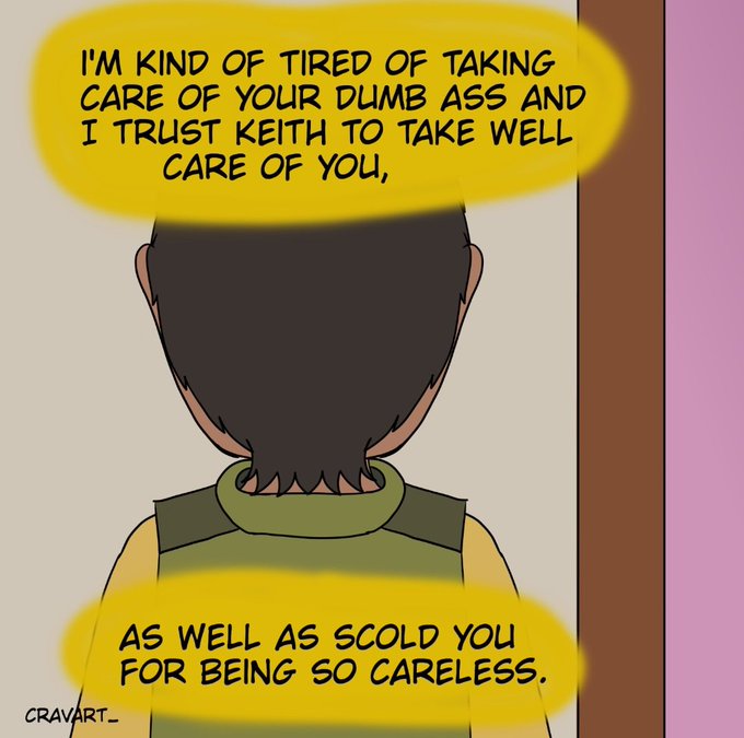 Part 7.2/?? of #klimherebabe comic! I'm back! I missed this comic so much 😭😭 This idea was taken to @saiphris 's klancember! She's a great writer (and artist!) fjekekrkfkr Hope you like it 💕