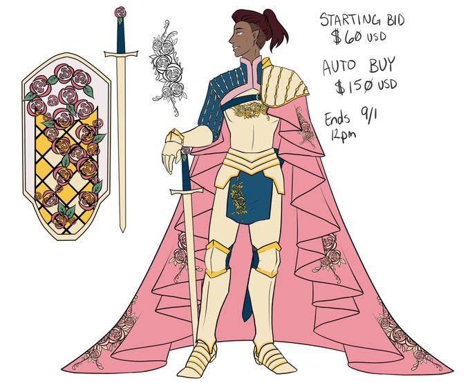 Alright! Here they are! One handsome Rosy Knight, ready for adventures! Starting Bid at $60, Auto buy at $150. Can make small alterations for an extra fee after purchase! You can reply to my reply below to bid, or DM me for a private bid. Winner gets the full 4000x3200 file!