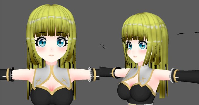 リグの経験が乏しいから時間がかかる。ブレンドシェイプで目を大きくしたら可愛くなったので、もう少し大きくしようか悩んでいます。