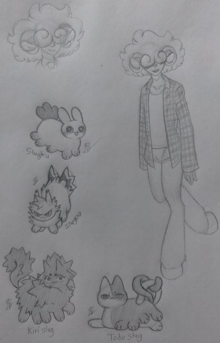 Some fanart of @Riifuneko 's mha slugs feat. my sona's slug and one of my #mhaoc , Caprako! Their slugs make me so happy to see and draw! 🥰