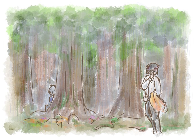 紅銀親子おえかき🌧️(※🎂⚔️パソストネタ) 今日は探し物🌧️の🌳日なんですって!