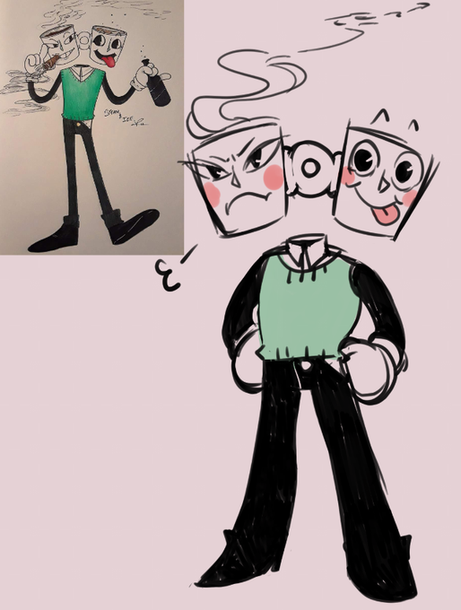 Redrew of my old Cuphead oc, Steam n Ice. One is hot coffee and other is iced.