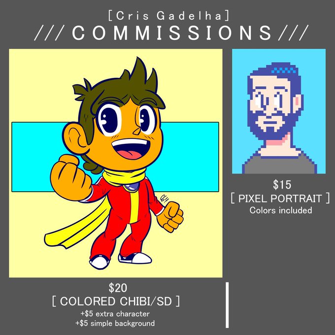 @NerdBoomer Eu sou ilustrador e tô aceitando commissions. Me chamem aí pra fazer os personagens boomer que cês curtem! :) Meu portfólio: https://t.co/2ySEh8h2TT