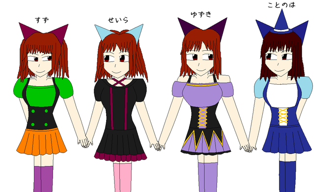 @suzu_carat スイーツ(すず&せいら)、ゆずのは(ゆずき&ことのは)ハロウィンver描かせてもらった。画像はせいら、ゆずき、ことのはたちに見せておいてほしい。よろしく頼む。