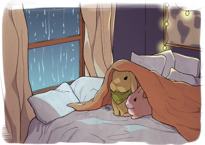 We're in the middle of the autumn and is starting to get cold 🍁 When there's a storm outside Lemon and Peach love to stay under the sheets. What do you like to do during a storm? ⛈️ #bunny #Autumnvibes