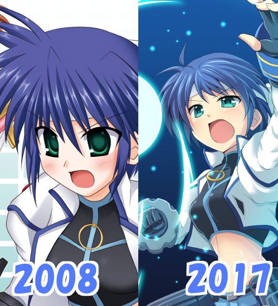 pixivに「twitterに上げてたなのは絵まとめ」みたいな感じで上げようと思って1枚目の表紙役として溜まってたのを並べてみたら、スバルだけ妙に気合入った絵になってて落差に笑う。あと皆左向き(