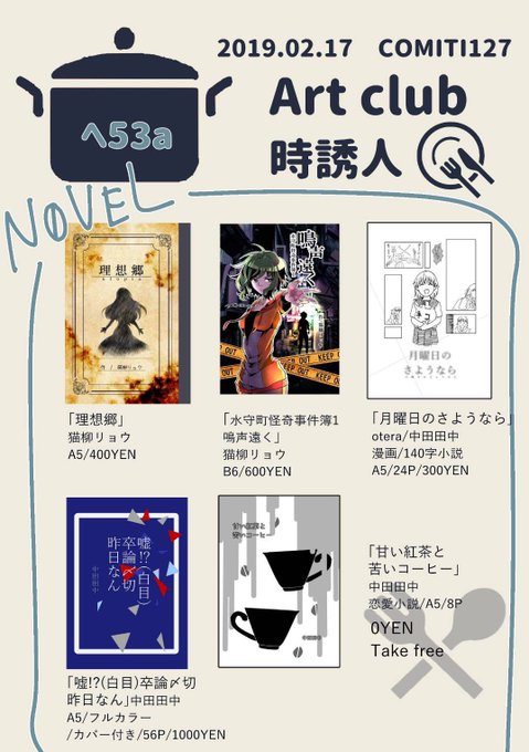 「へ53a Art Club 時誘人」にてお待ちしております!サークルでの出展です!