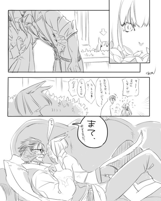 今年全然描いてないので過去のrkgkを貼っておきます。 (2015年から描いたものごちゃまぜ) ◆しっかりものアウラ氏とずぼらなミコッテちゃん