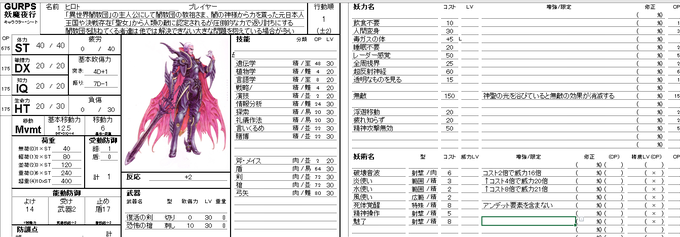 主人公のキャラシートも作ってみました