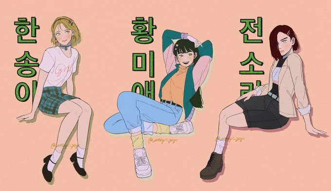 IF 고등학생 송이 x 미애 x 소라 레트로 컨셉으로 🍏🪩 #세기말풋사과보습학원 #세풋보 #fanart