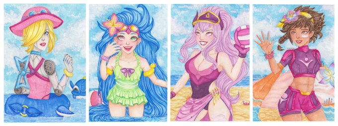 @FeedYourGames @chuckle_chi Thank you for this art share!! I'm Cruss and I'm a traditional watercolor artist! Here are my most recent pieces from my LoL Pool Party painting series!!