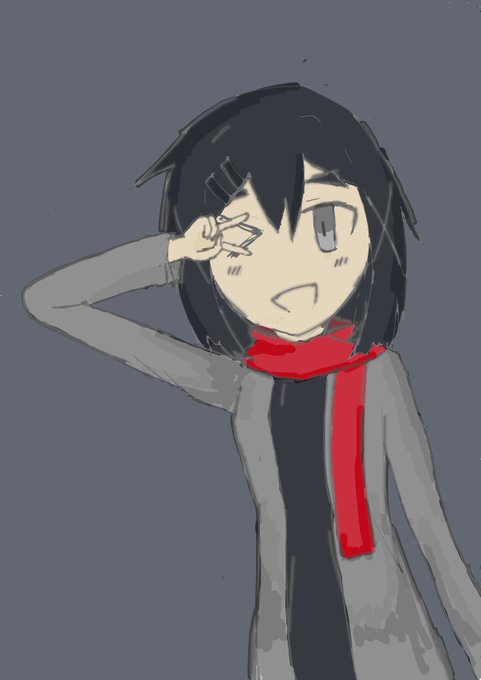 @ahona_kituko さんの右の奴参考にして描きました 髪の部分よくわからなかったから単純なポニテにしたけどゆるして...