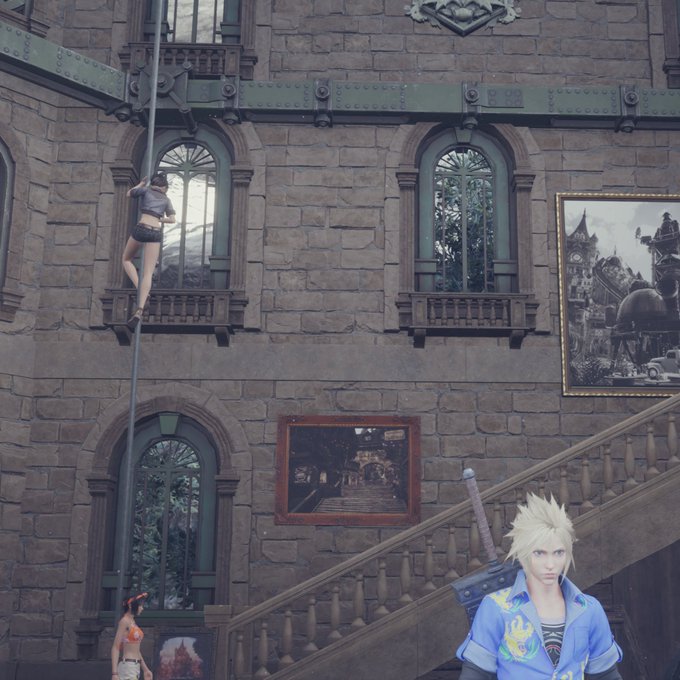 クラウドくん…もしやティファに見惚れ過ぎて前のめりになってガン見してる?🐣👀🎇🐬