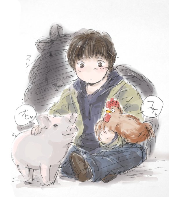 絵垢のバイオ村ラクガキが線ボケてたのが気になって…何故か塗った(だから何故)(主線を引き直す選択肢は) 🐐デカすぎるよね…勝手に子豚にしたし服が違う気もするが許してね(´>ω∂`)テヘペロ☆