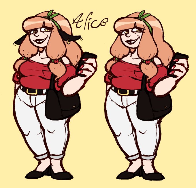 Gave an oc of mine a little redesign for a Rabbit Doubt game! :D Her name is Alice Applecrest and she's a baker. And she might- or might be cursed after having her first kid?? Who knows.