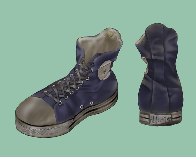 課題の10年使ったほぼコンバースなスニーカー進捗 とりあえず1時間チャレンジびふぉーあふたー #イラスト #イラスト練習