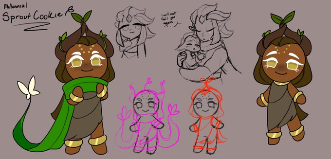 This is Millennial Sprout Cookie, they will be the future millennial tree persay as they will protect and give new life to the forest. I made an AU where Millennial Tree dies after slowly giving all of their life to a war torn world