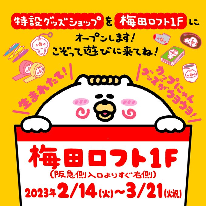 みんなでGOー!大阪の梅田ロフト1Fでカップにゃんの特設グッズショップがオープンにゃんよ!2/14〜3/21までみんな来てにゃん! #カップにゃん #キャラクター #イラスト #ネコ #Character #アニメ #梅田LOFT #梅田ロフト #loft #ロフト #おはようございます #土曜日 #おでかけ