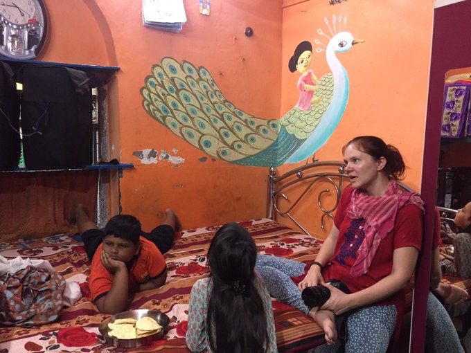 #hopepainters finished a #wallart project in a village!! A girl sits on a #peacock really fits her home. Our vision is to empower people living under #hopeless circumstances by doing #visualarts for #community. #artinspireschange #cupofcolor @KokdamonLam #kolkata #illustration