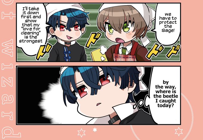 here is the 1st 4koma of 3 illustrated by Kidayuu-sensei featuring cleaning wizards!