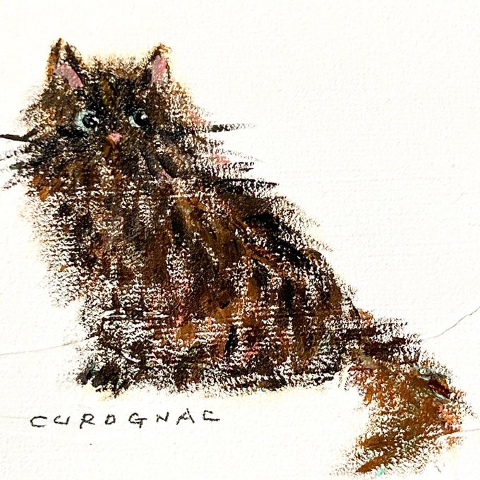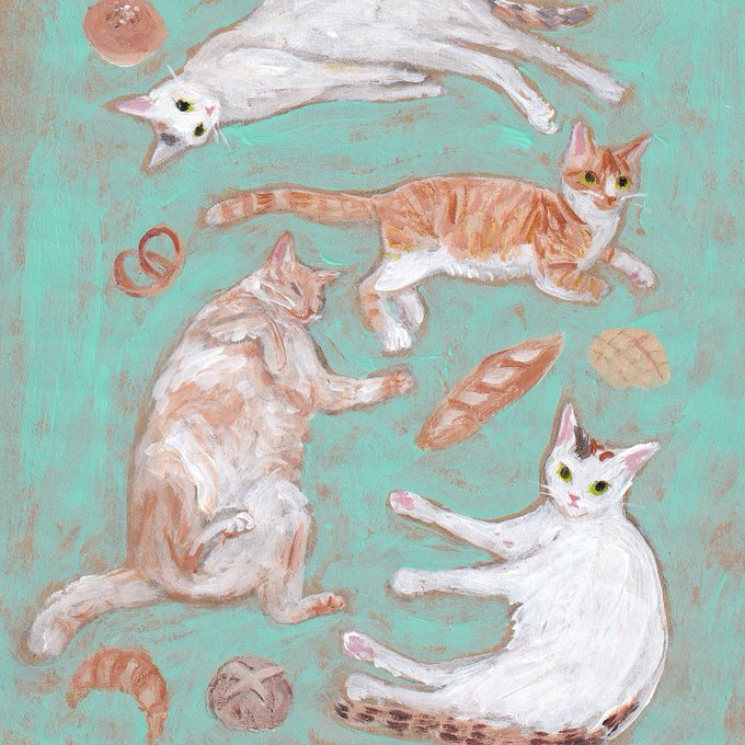 ねことパン。ごろーん。#猫 #イラスト #アクリル 最近はパン食べる回数かなり減らしてるけど、、クロワッサン食べたいな…😋